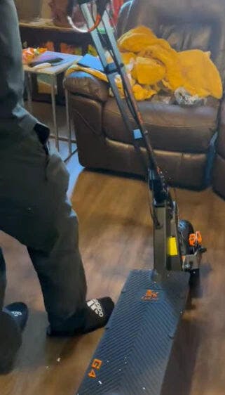 ¡Envío rápido y eficiente! Este patinete es fantástico, rapidísimo y muy estable. Ya he alcanzado los 75 km/h en llano. Lo recomiendo para uso diario. Las únicas desventajas son su peso y la falta de amortiguación de la dirección a altas velocidades.